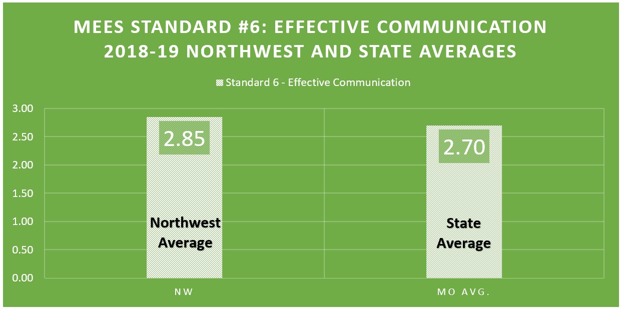 As shown in the data below, Northwest candidates’ performance on MEES Standard #6 compares favorably with the state average for 2018-19: