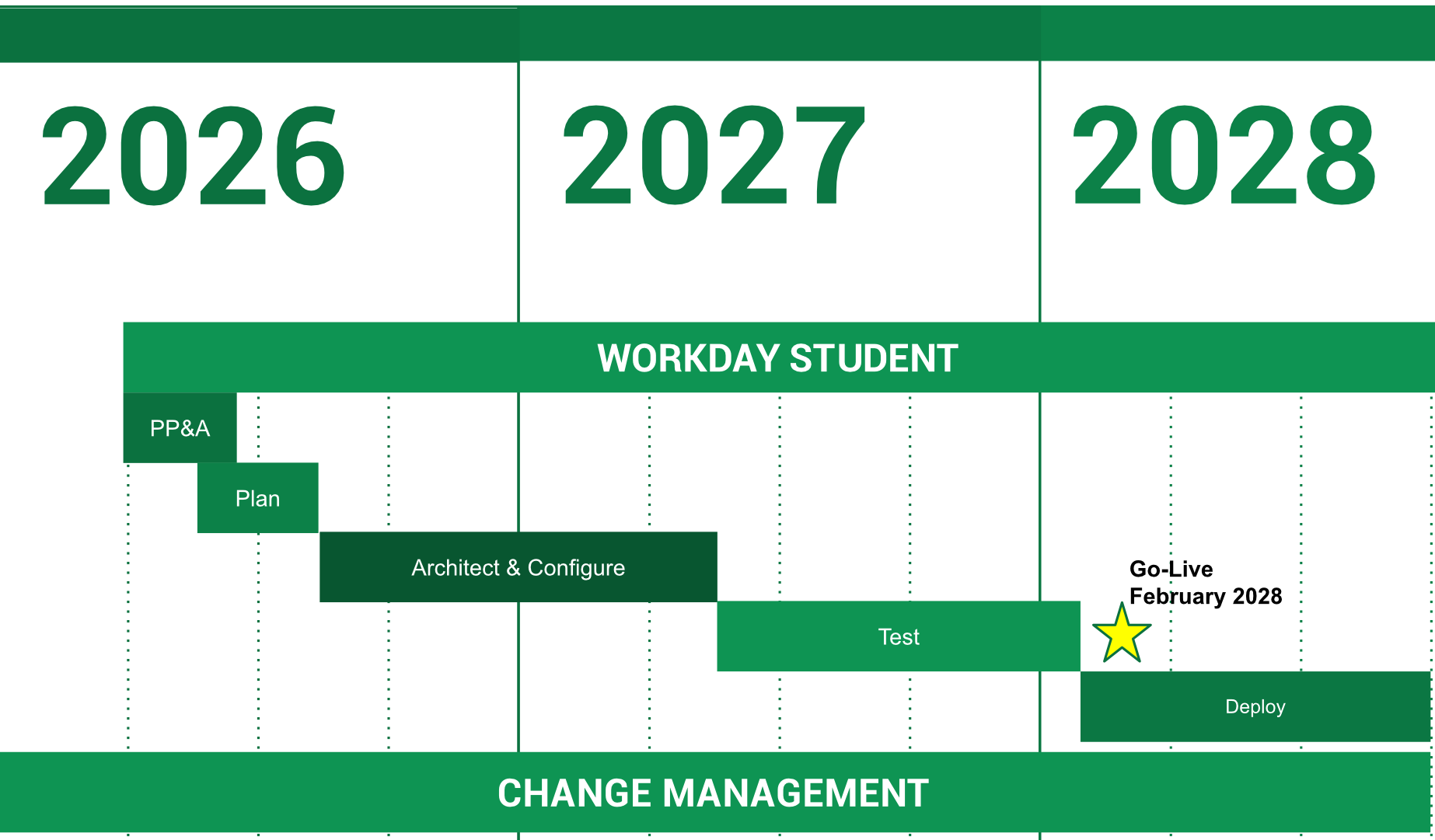 Workday Student is deployed on a rolling basis over multiple deployment milestones. Each milestone of the Workday Student deployment will include the stages, activities, and deliverables.